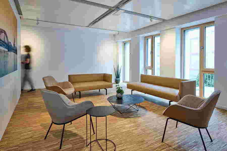 Als nachwachsender Rohstoff stand Holz bei der Materialwahl besonders im Fokus – von der CO₂-neutral produzierten Außenfassade bis zu Fenster- und Türrahmen. Handwerksbetriebe und Lieferanten kamen überwiegend aus der Region und ausschließlich aus Deutschland. Auch die soziale Dimension der Nachhaltigkeit hat der Club berücksichtigt und zum Beispiel die Mitarbeiter mit Workshops in den Planungsprozess einbezogen. Die 1.200 Quadratmeter Fläche – 400 mehr als bisher – bieten ideale Bedingungen für „New Work“: modernes und flexibles Arbeiten, das einen produktiven Austausch über Abteilungen hinweg fördert sowie Rückzugsmöglichkeiten für ungestörtes Arbeiten bietet.